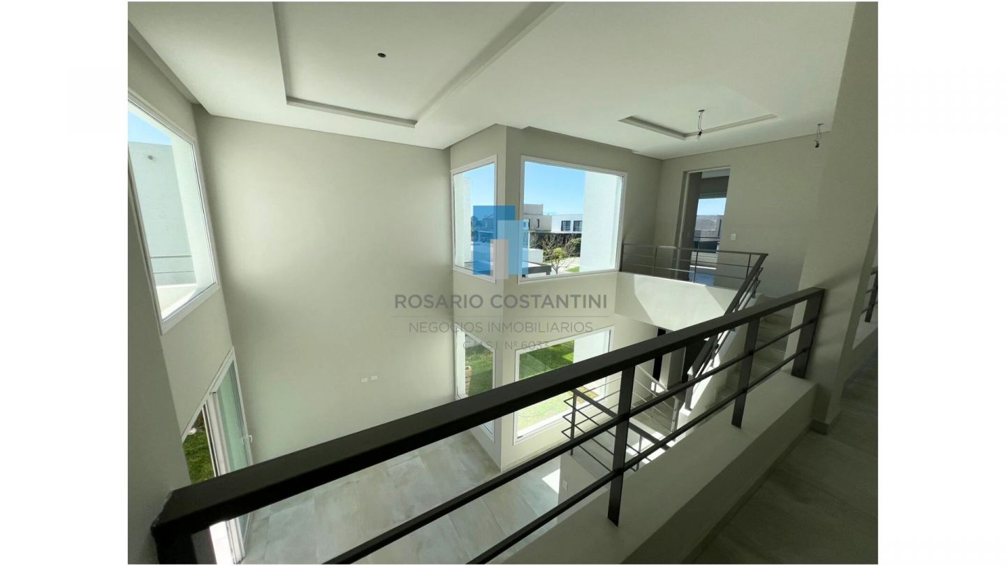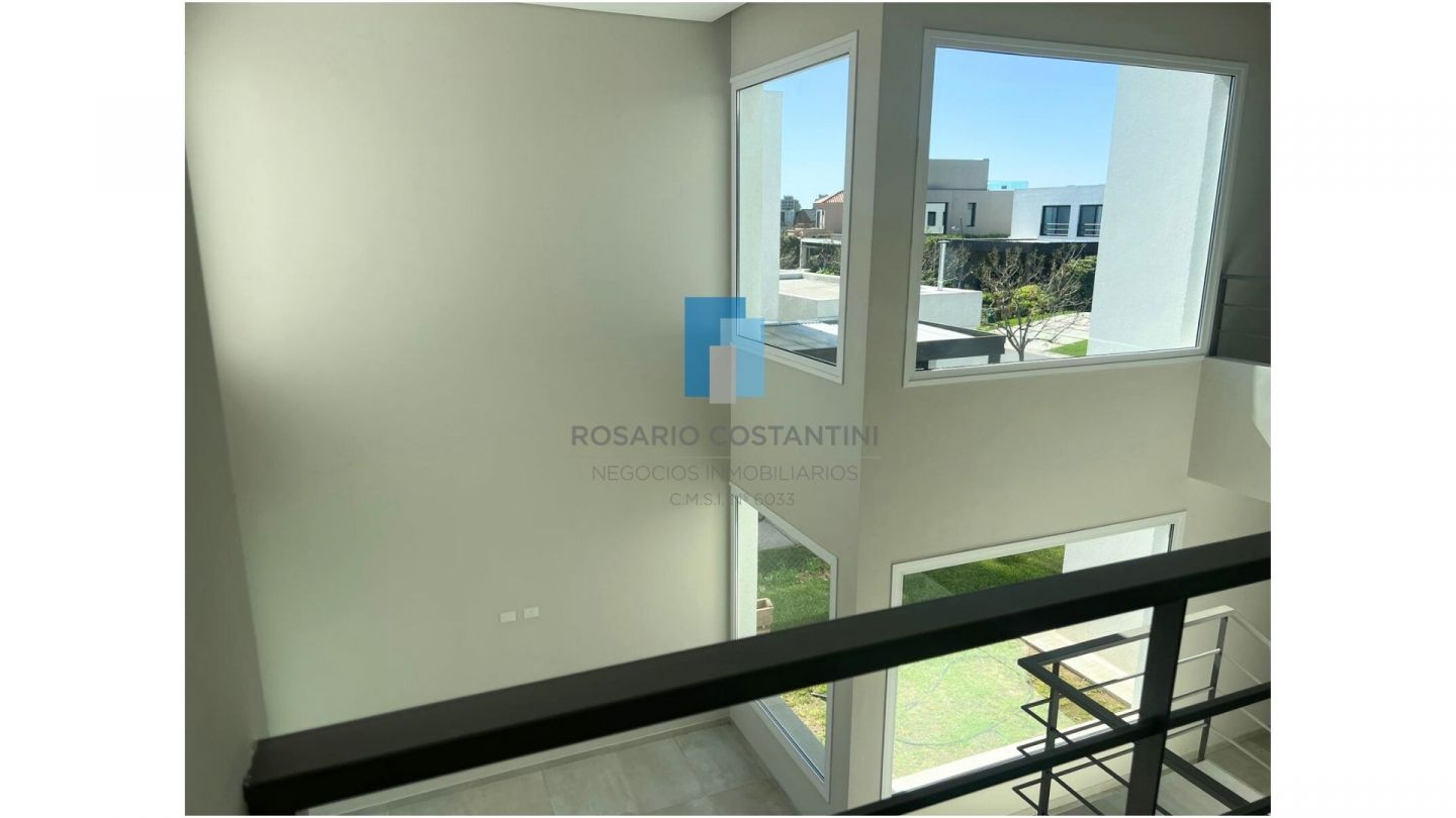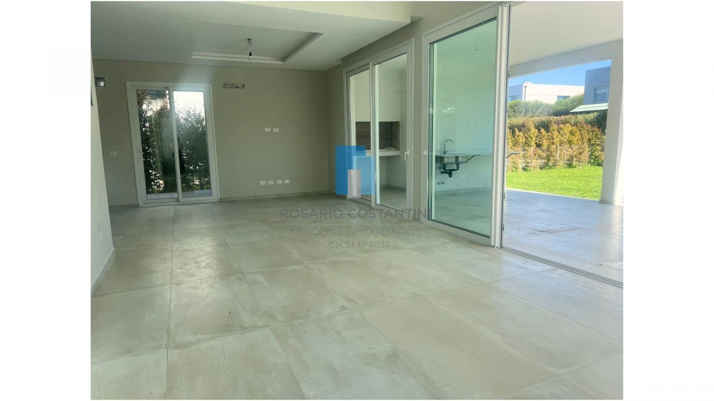 Casa a estrenar en Castaños sobre muy lindo lote interno, con excelente ubicacion dentro del barrio. Hall de recepcion con patio interno. Living comedor en doble altura con ventanales a la galeria y vista al patio interno y al Jardin. Toilette. Cocina semi integrada. Lavadero con entrada independiente. Dependencia de servicio o escritorio.