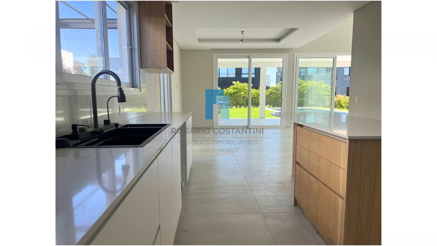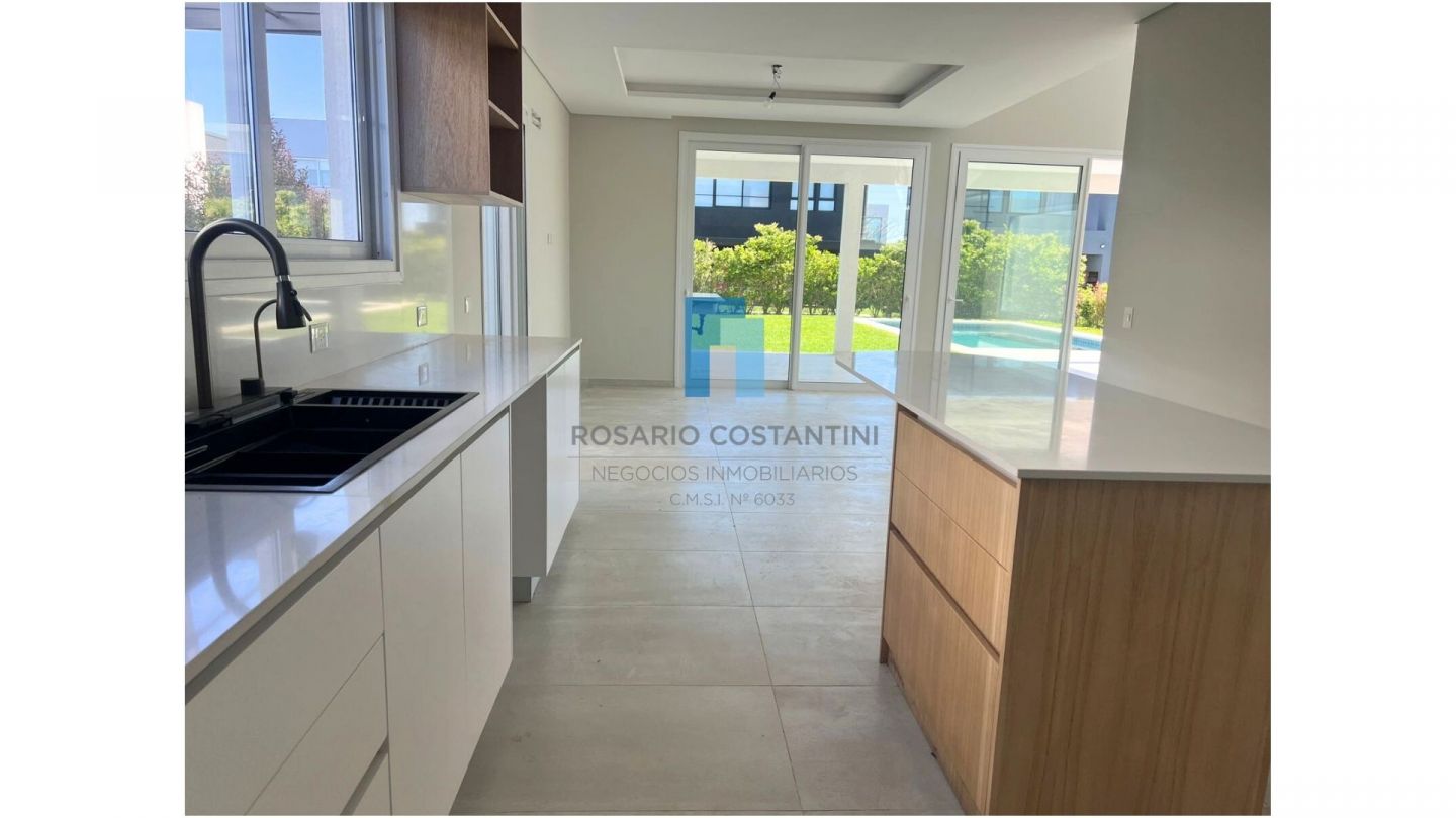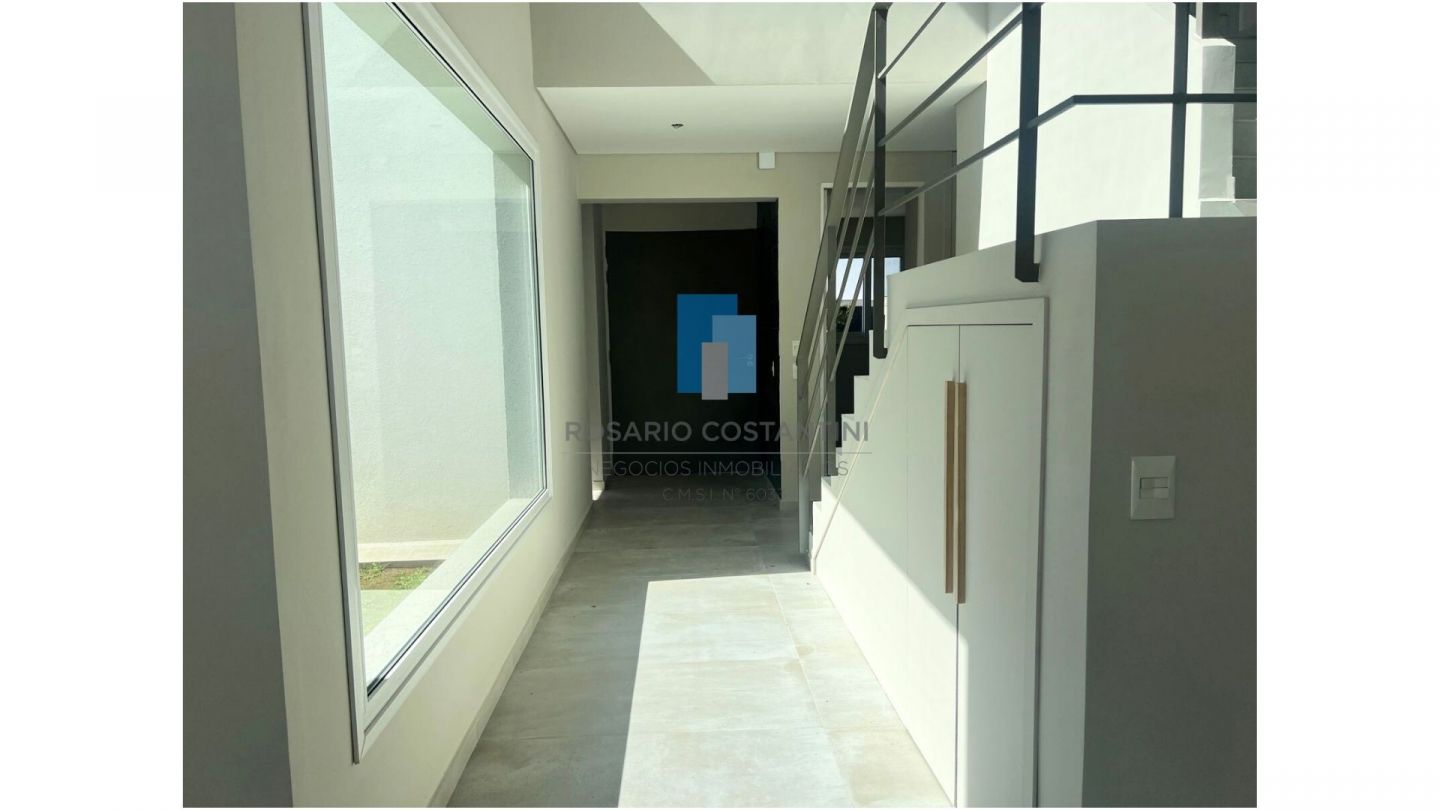 Casa a estrenar en Castaños sobre muy lindo lote interno, con excelente ubicacion dentro del barrio. Hall de recepcion con patio interno. Living comedor en doble altura con ventanales a la galeria y vista al patio interno y al Jardin. Toilette. Cocina semi integrada. Lavadero con entrada independiente. Dependencia de servicio o escritorio.