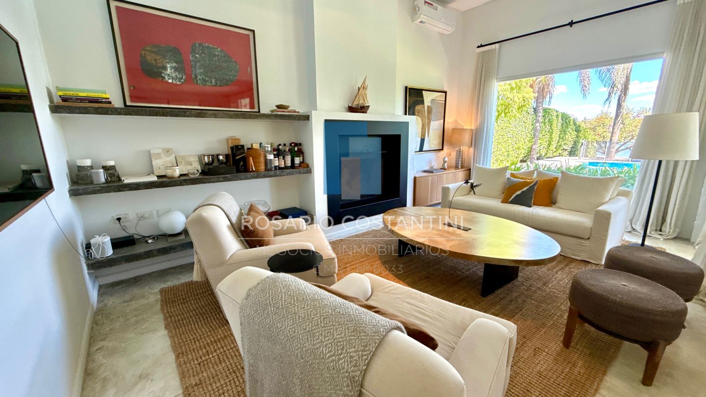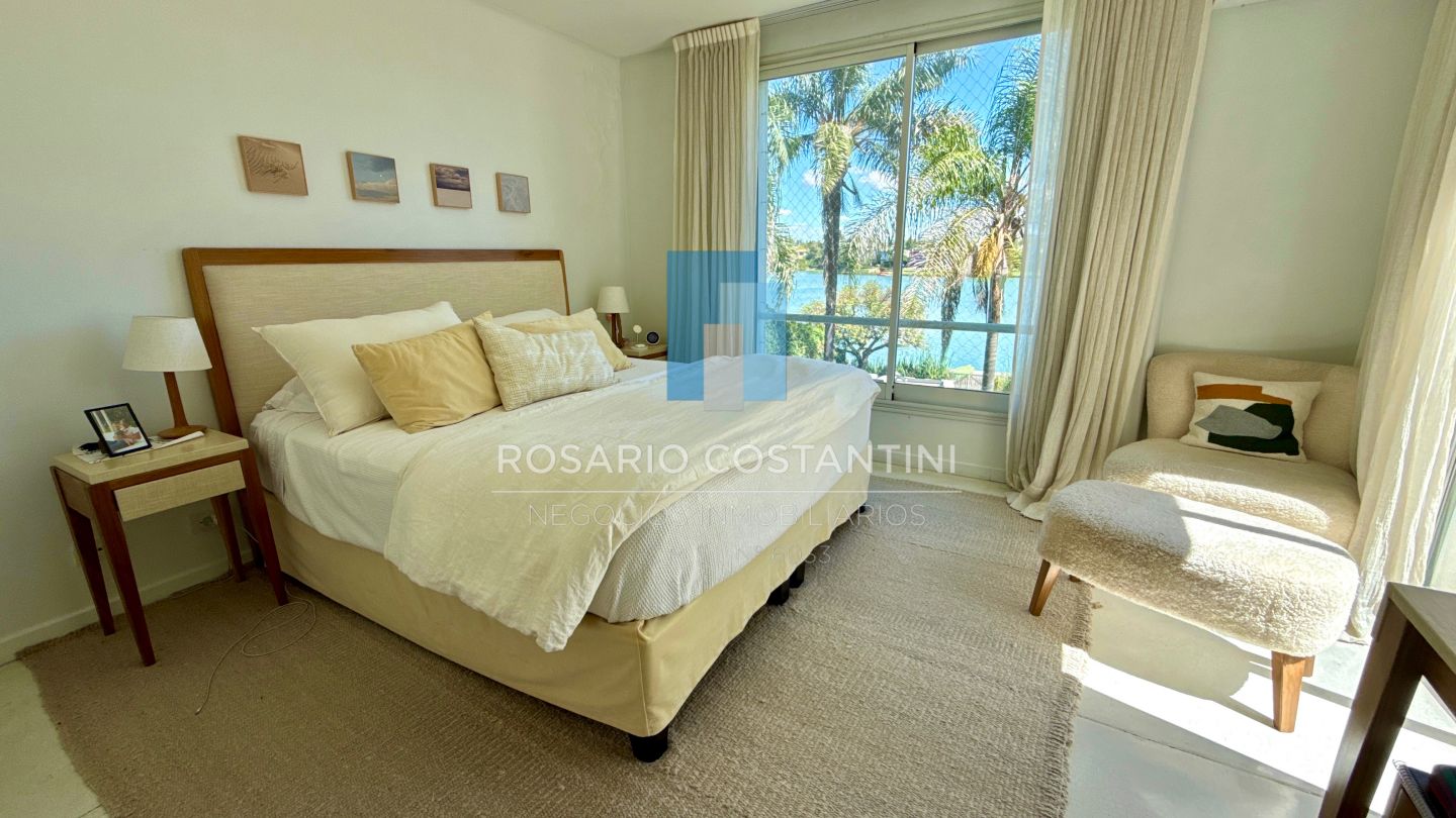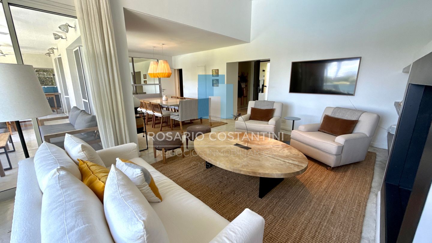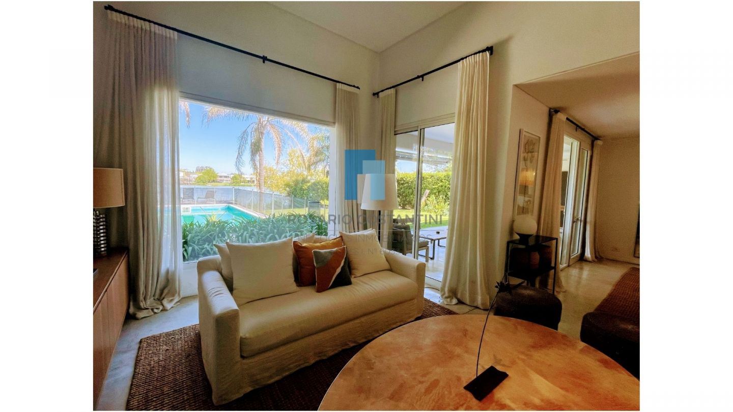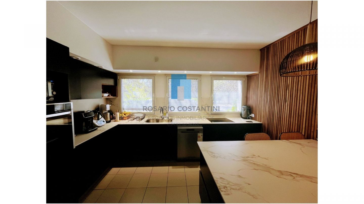 PB ; Amplio living con vista a la laguna y circulacion hacia la galeria, Cocina con barra desayunadora para 4 personas, realizada a nuevo con concepto moderno.