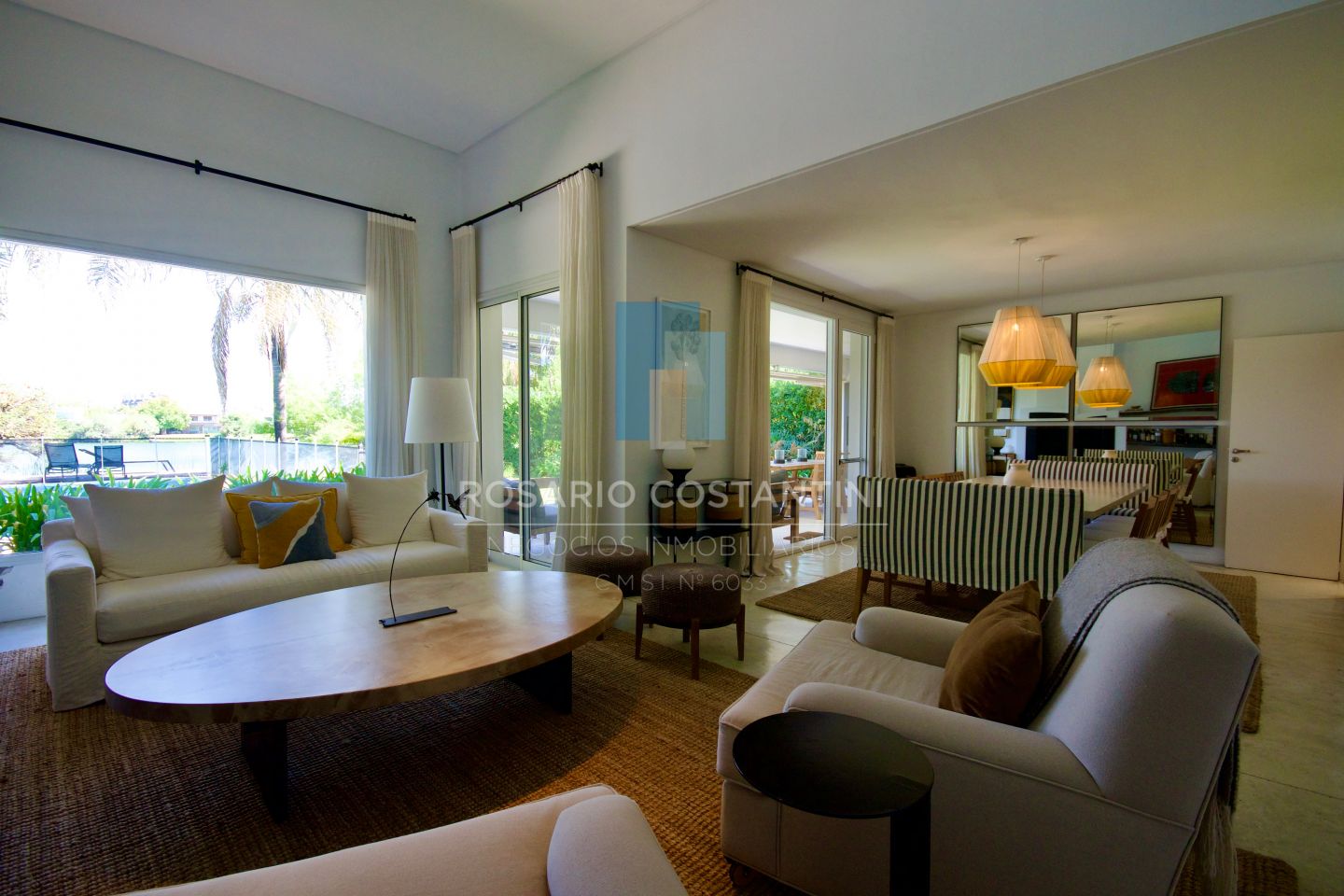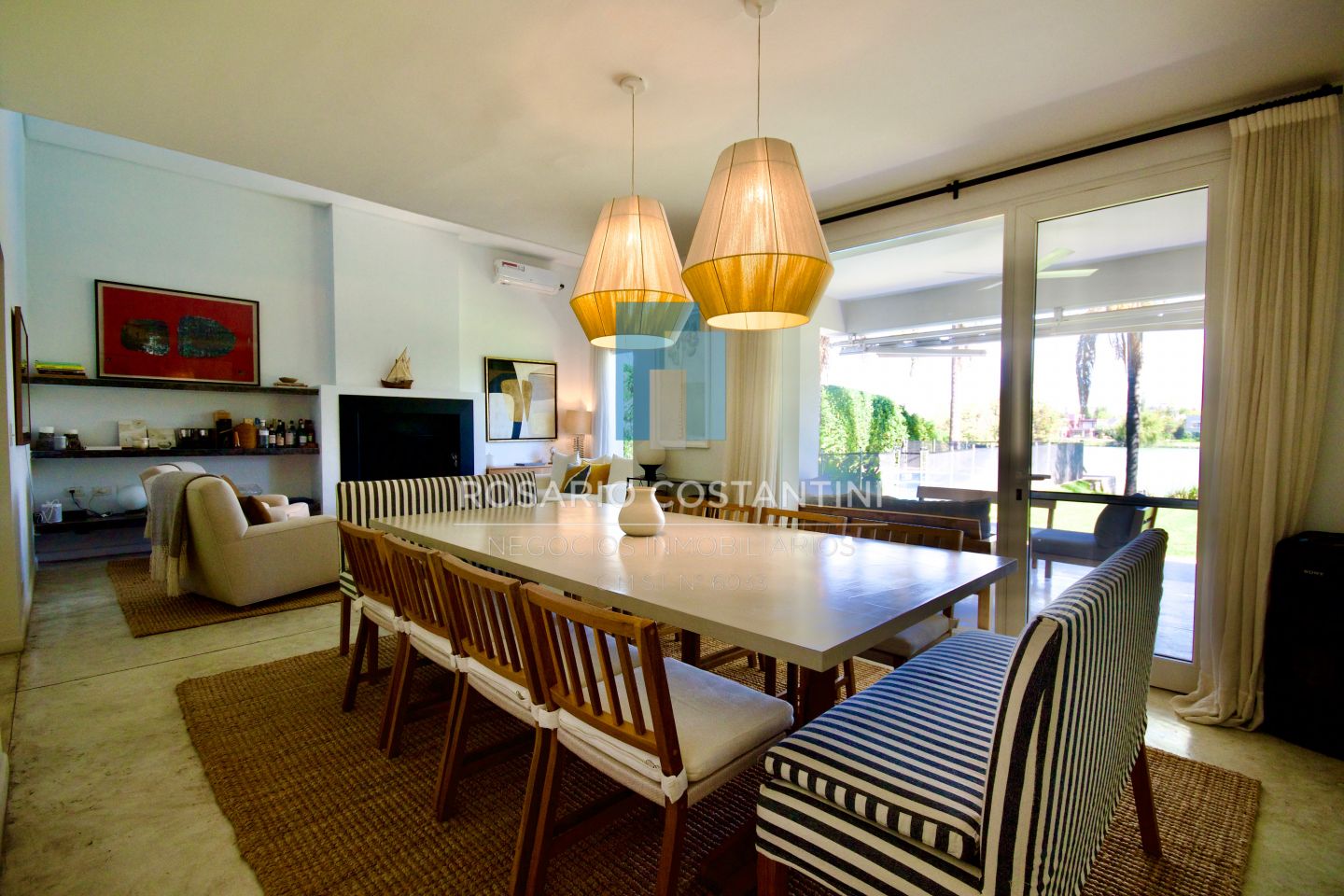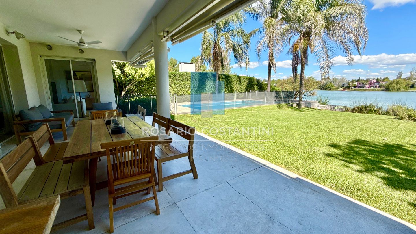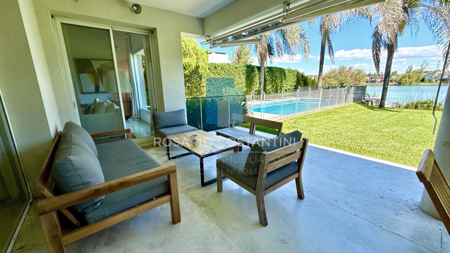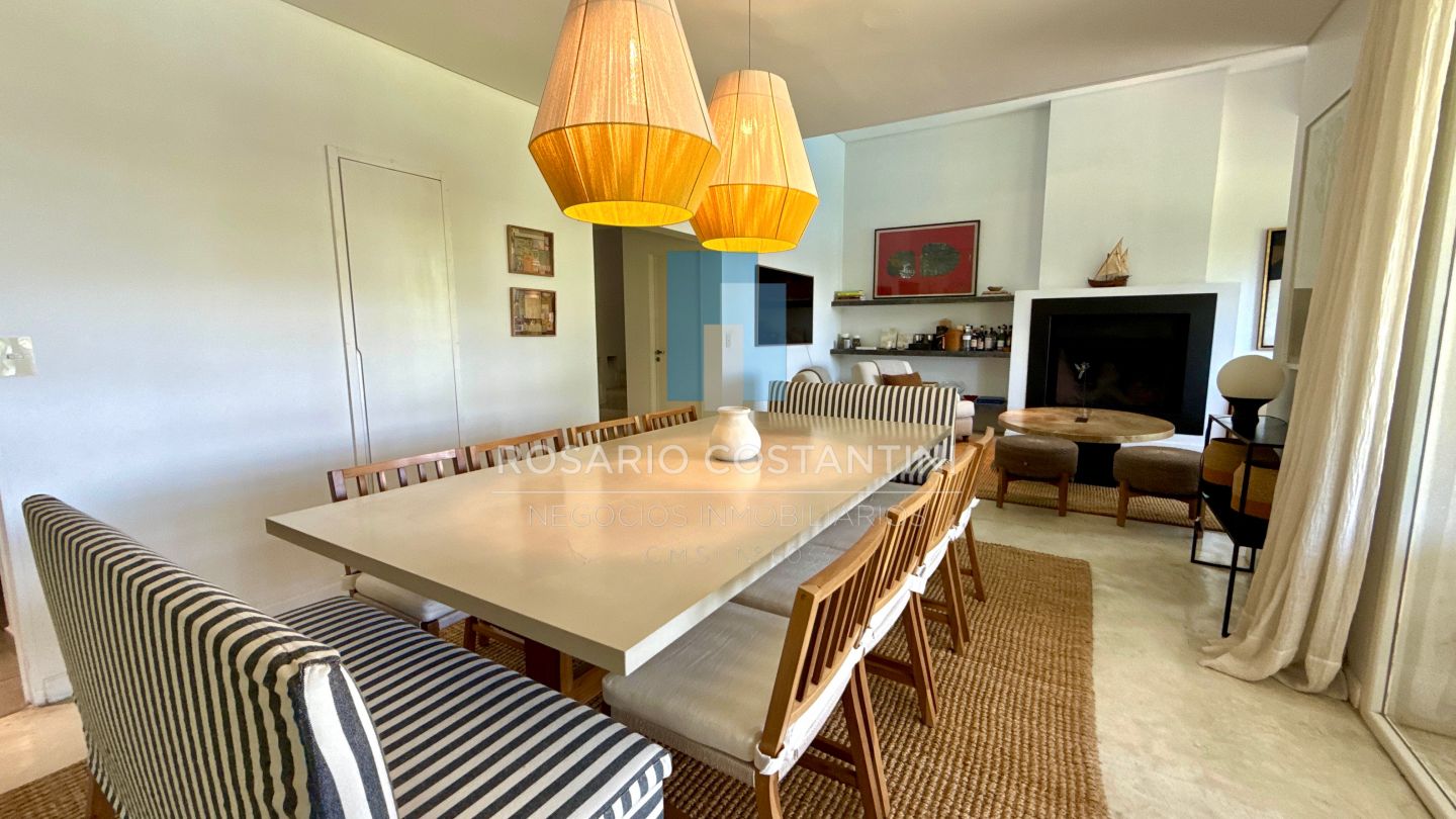PB ; Amplio living con vista a la laguna y circulacion hacia la galeria, Cocina con barra desayunadora para 4 personas, realizada a nuevo con concepto moderno.