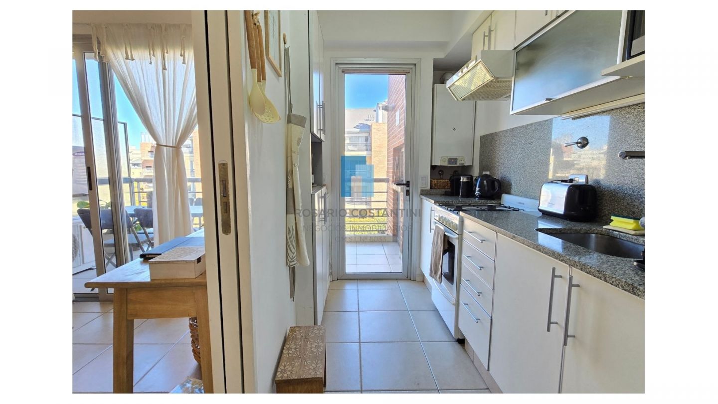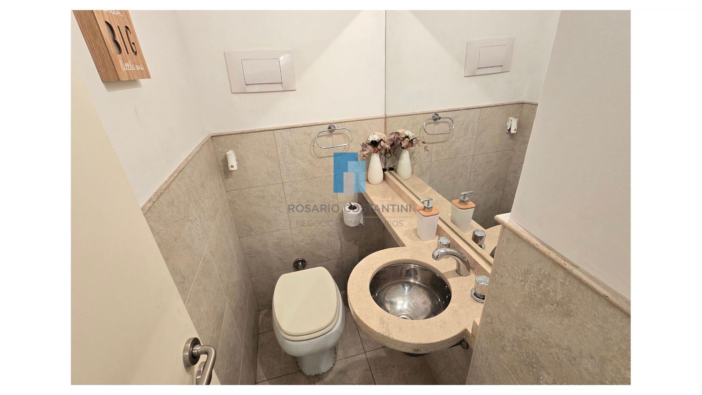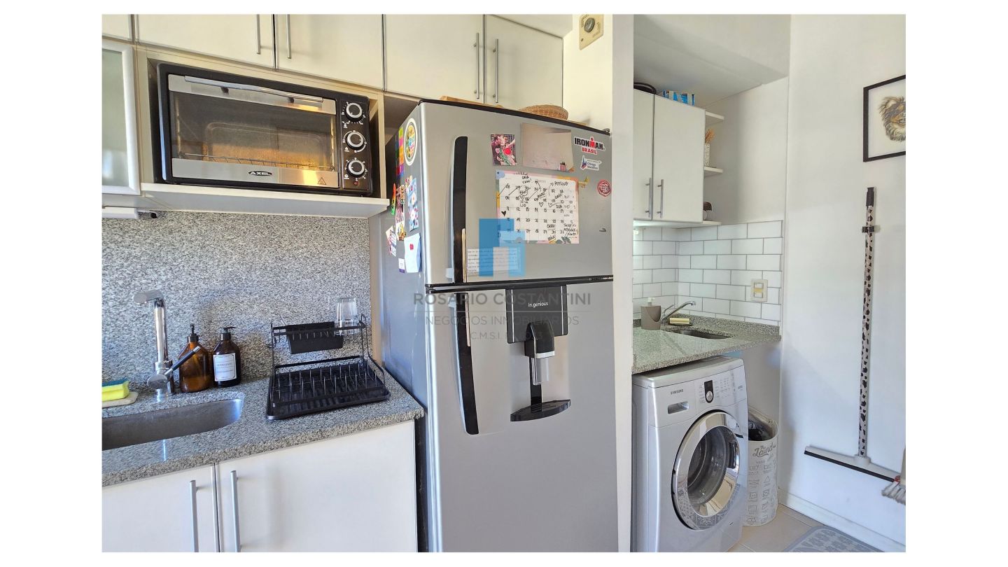 Muy lindo departamento con vista interna al pulmón verde del complejo, al ingreso toilette de recepción, cocina semi integrada con living comedor. Espacio de lavarropas con bacha adicional. Generoso balcón con parrilla y vistas verdes.