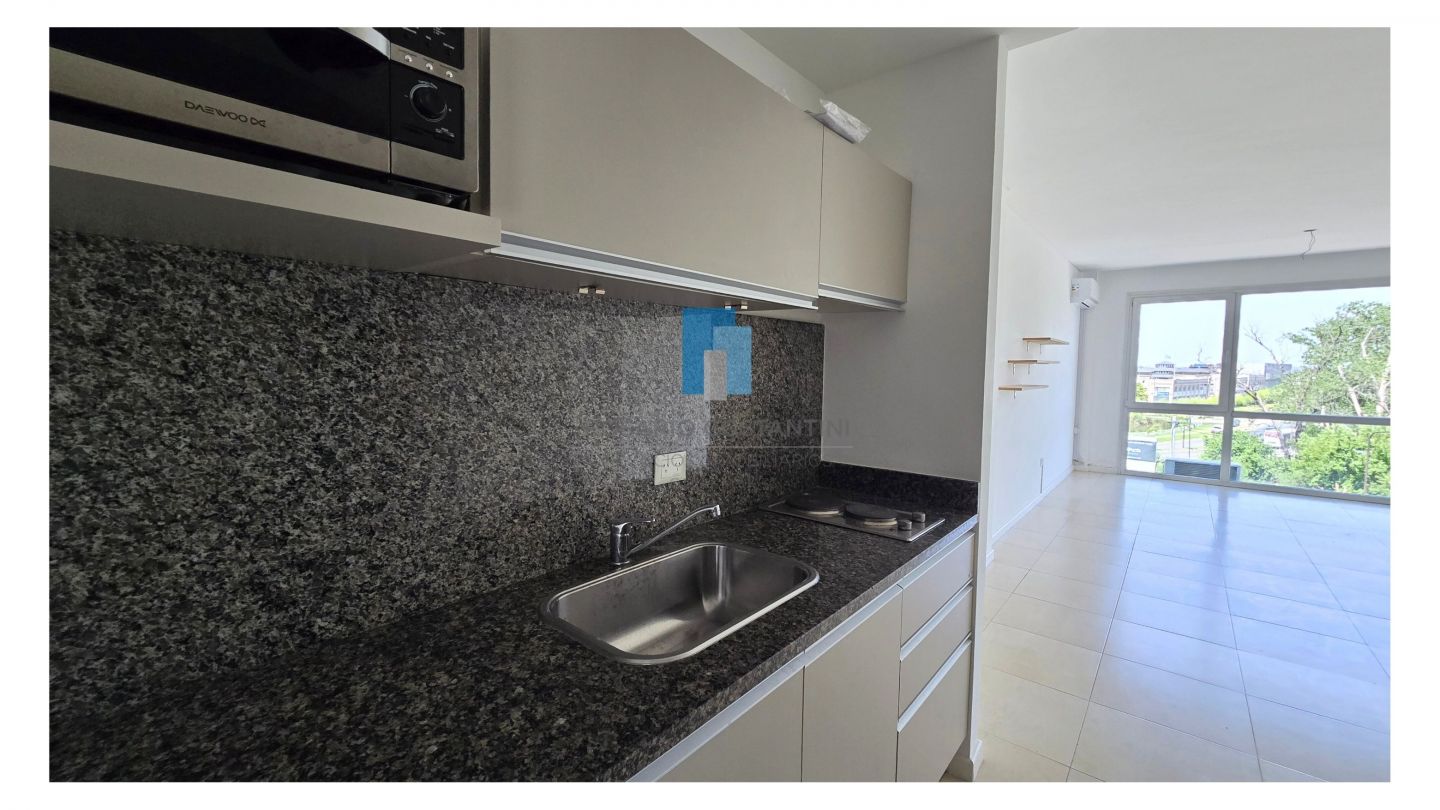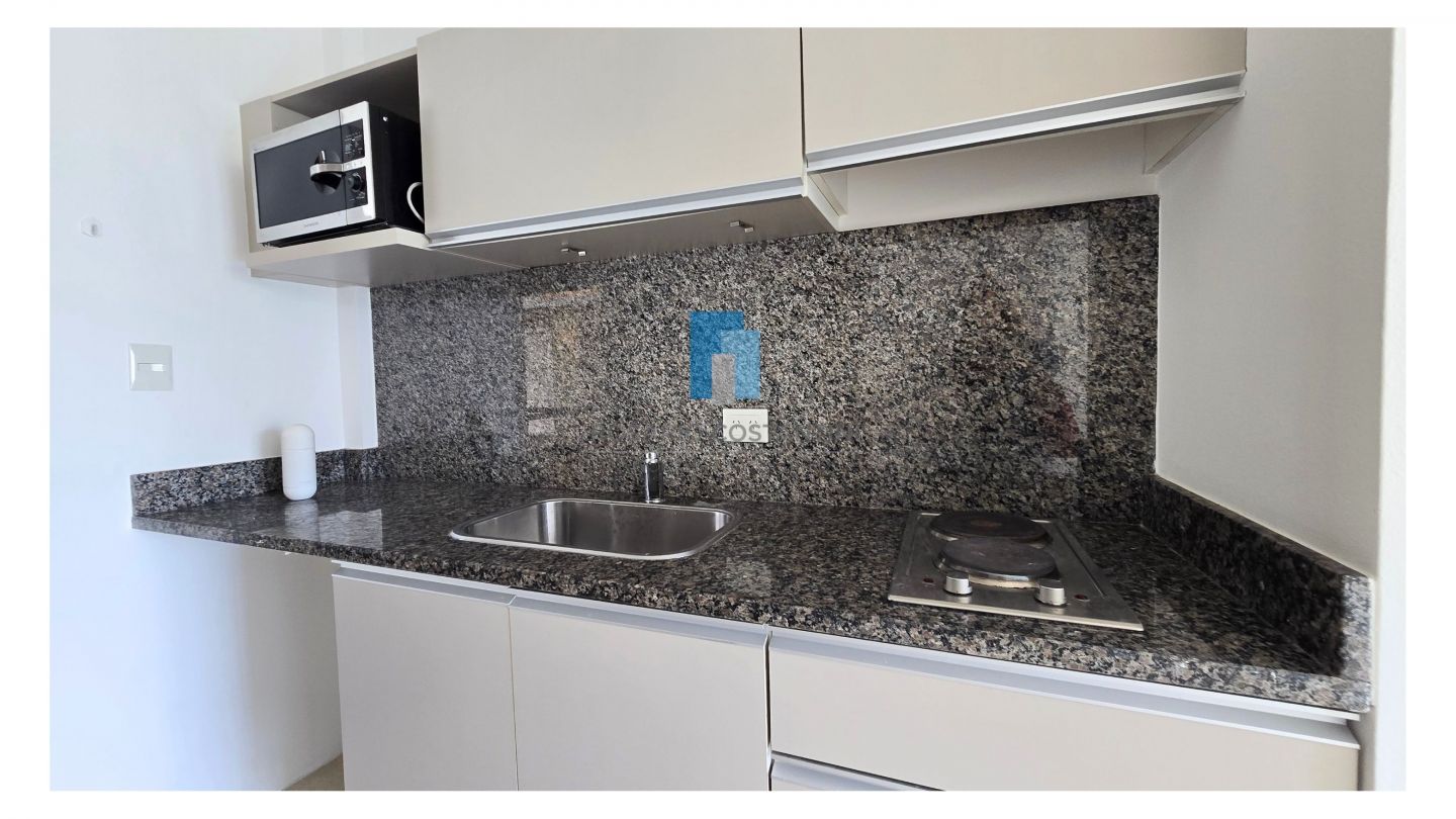 Monoambiente apto profesional con vista al contrafrente, en muy buen estado. Al ingreso cocina con espacio para heladera bajo mesada. Baño completo con bañera y mampara. Amplio ambiente con placard completo. Vista abierta muy bonita.