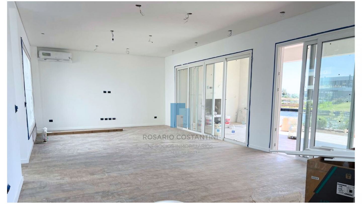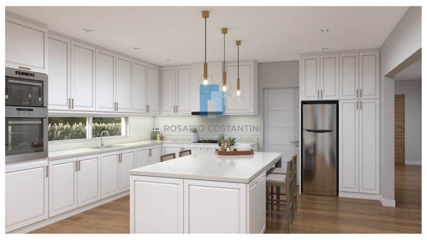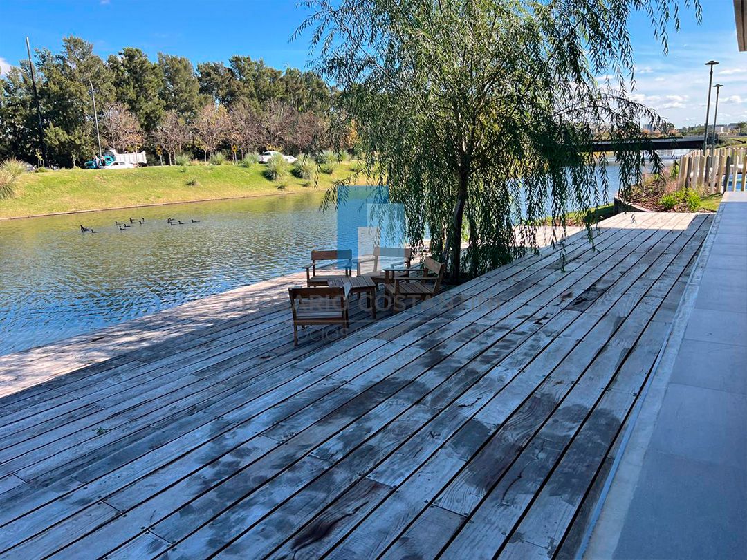 En planta baja hall de entrada, amplio living-comedor súper luminoso con vista al lago, cocina semi integrada, muy amplia, con isla, y espacio para play o comedor diario.