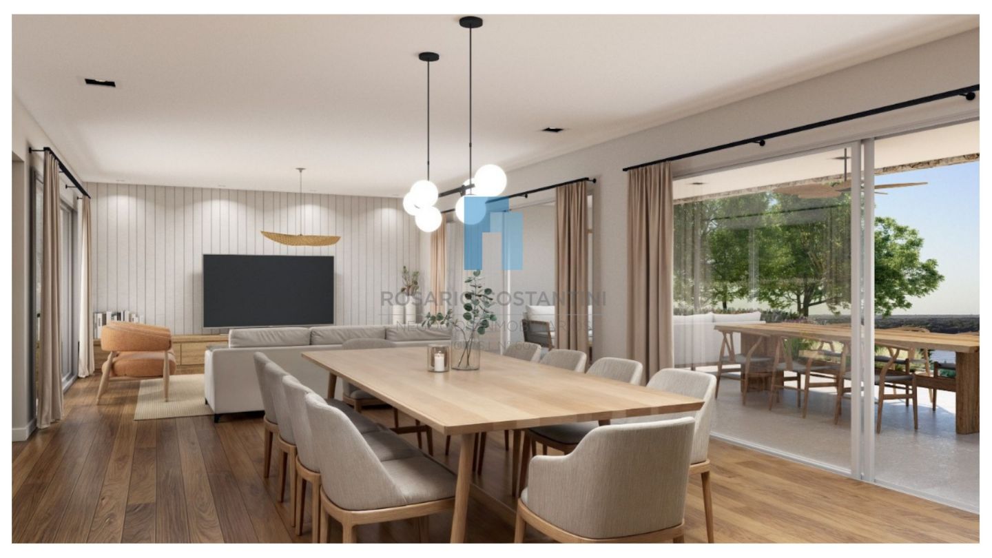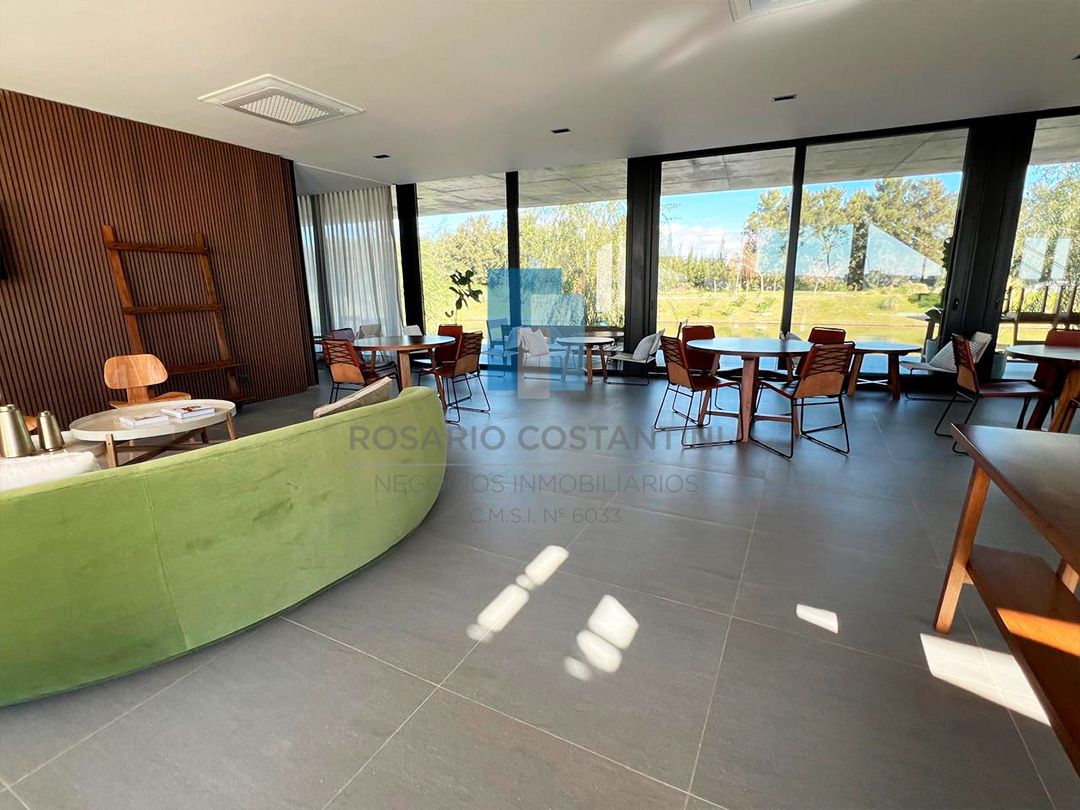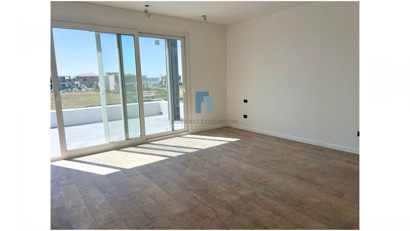 En planta baja hall de entrada, amplio living-comedor súper luminoso con vista al lago, cocina semi integrada, muy amplia, con isla, y espacio para play o comedor diario.