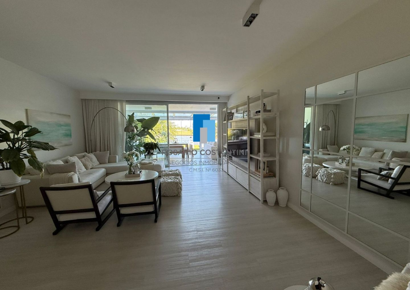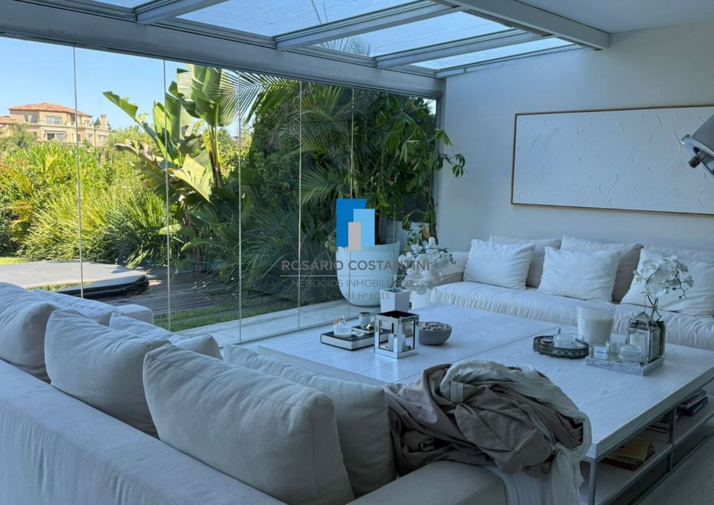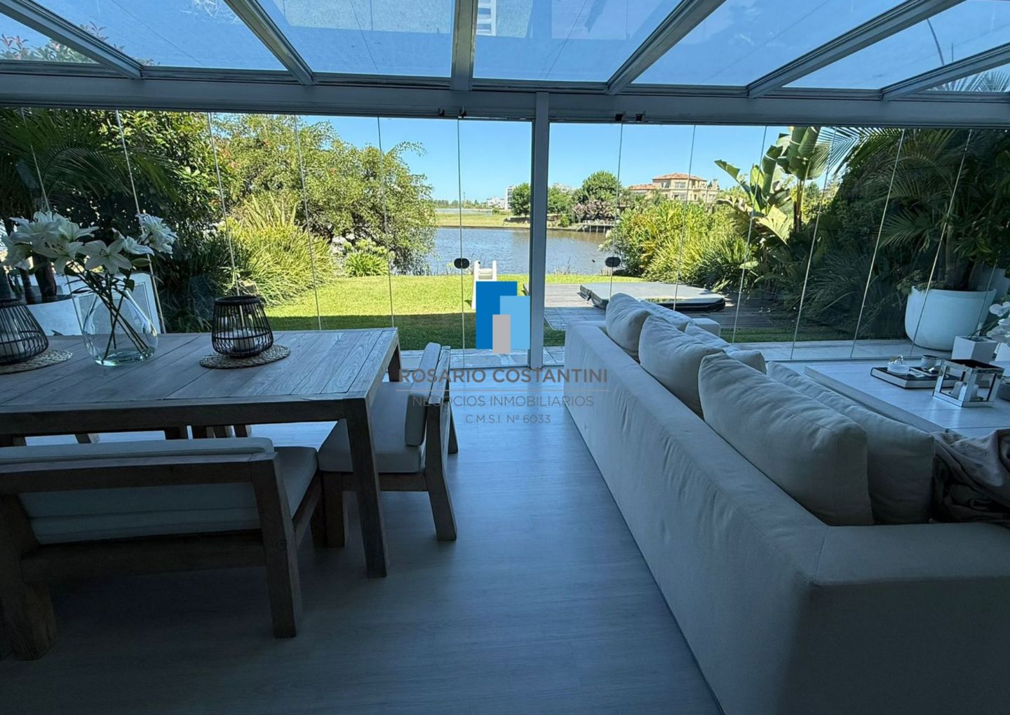 El área social está compuesta por un amplio living comedor con grandes ventanales y salida directa al exterior, integrándose al deck propio y al jardín sobre el agua. La galería cerrada en vidrio permite disfrutar el espacio durante todo el año, generando una verdadera continuidad interior-exterior. En el exterior: Deck amplio, jardín al canal y jacuzzi privado, todo orientado hacia el espejo de agua más abierto del complejo.