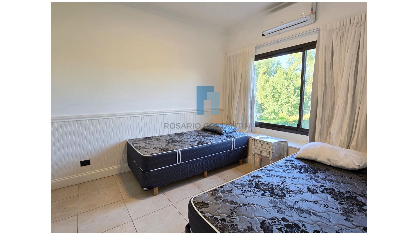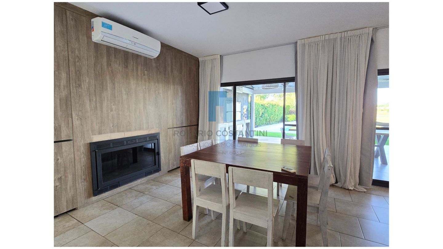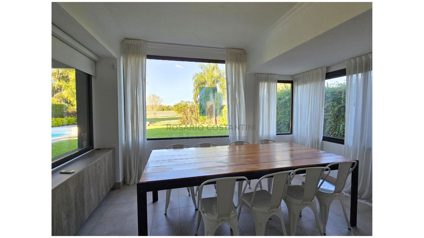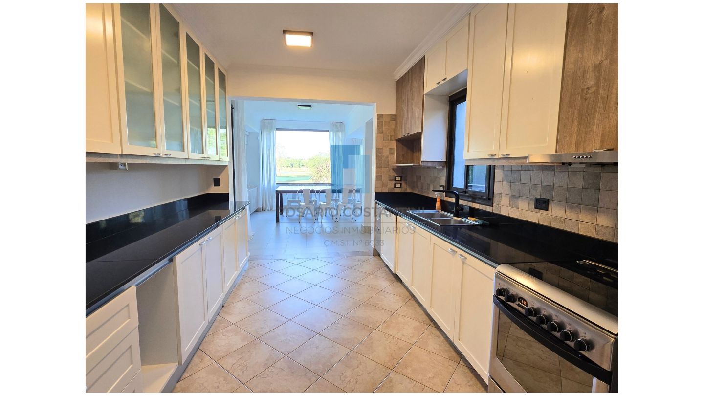 Living comedor separado de la cocina, con hogar LePen, con salida a la galería y muy lindas vistas al jardín y al campo de golf. Cocina separada con espacio generoso de comedor diario o play con las mismas vistas.